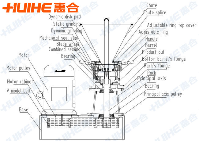 The main structures of colloid mill are grinding parts, the base transmission department and dedicated motor. The dynamic and still millstones in the core part and mechanical seal parts are the most key parts.