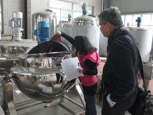 經過與業務員的多次溝通與確認,新加坡客戶于2015年3月12日在我公司下單一臺600L高壓蒸煮鍋。目前設備已接近收尾工作,客戶來我公司驗貨,業務員熱情接待并為其講解了我公司的其它機械設備。