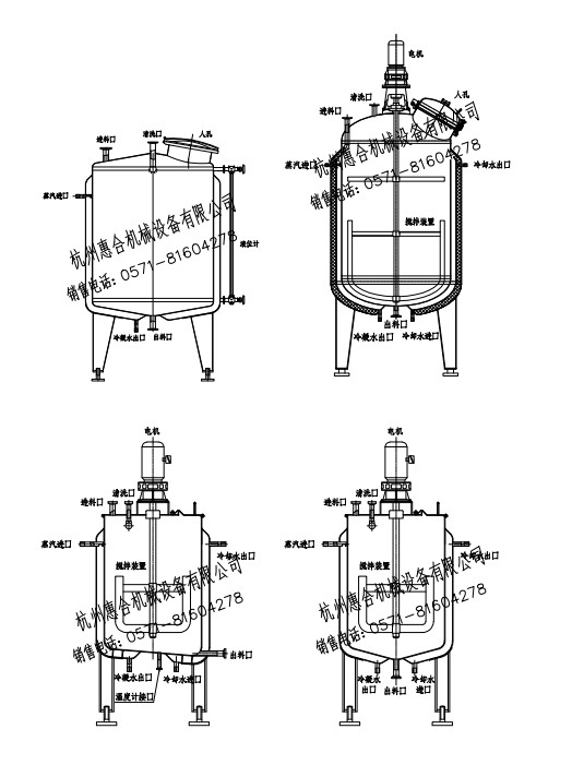 化糖罐缸體、缸蓋、攪拌槳、進料口、出料口均由不銹耐酸鋼1Cr18Ni9Ti制成。