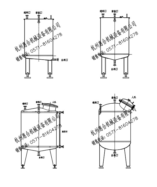 該系列儲(chǔ)罐由圓柱形不銹鋼內(nèi)筒組成筒體,并配有衛(wèi)生人孔、清洗球、液位計(jì)。