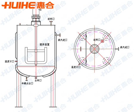 攪拌罐缸體、缸蓋、攪拌槳、進料口、出料口均由不銹耐酸鋼1Cr18Ni9Ti制成,按GB741-80技術條件進行,缸體內拋光,內有攪拌槳,起攪拌作用。
