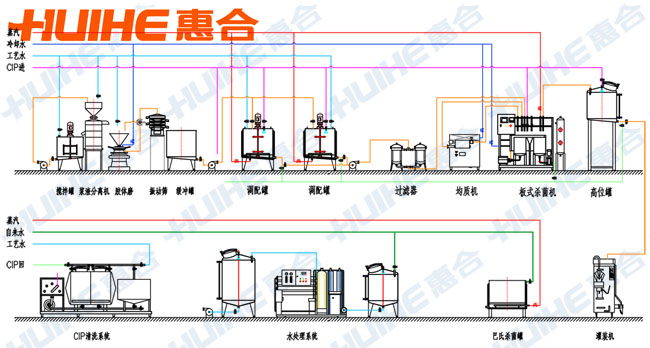 調(diào)配→超高溫瞬時(shí)滅菌→真空脫氣→均質(zhì)→儲存
